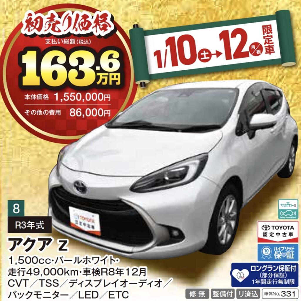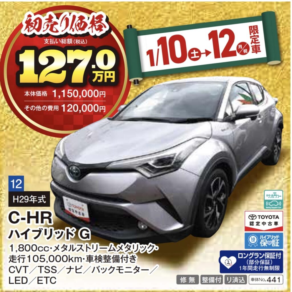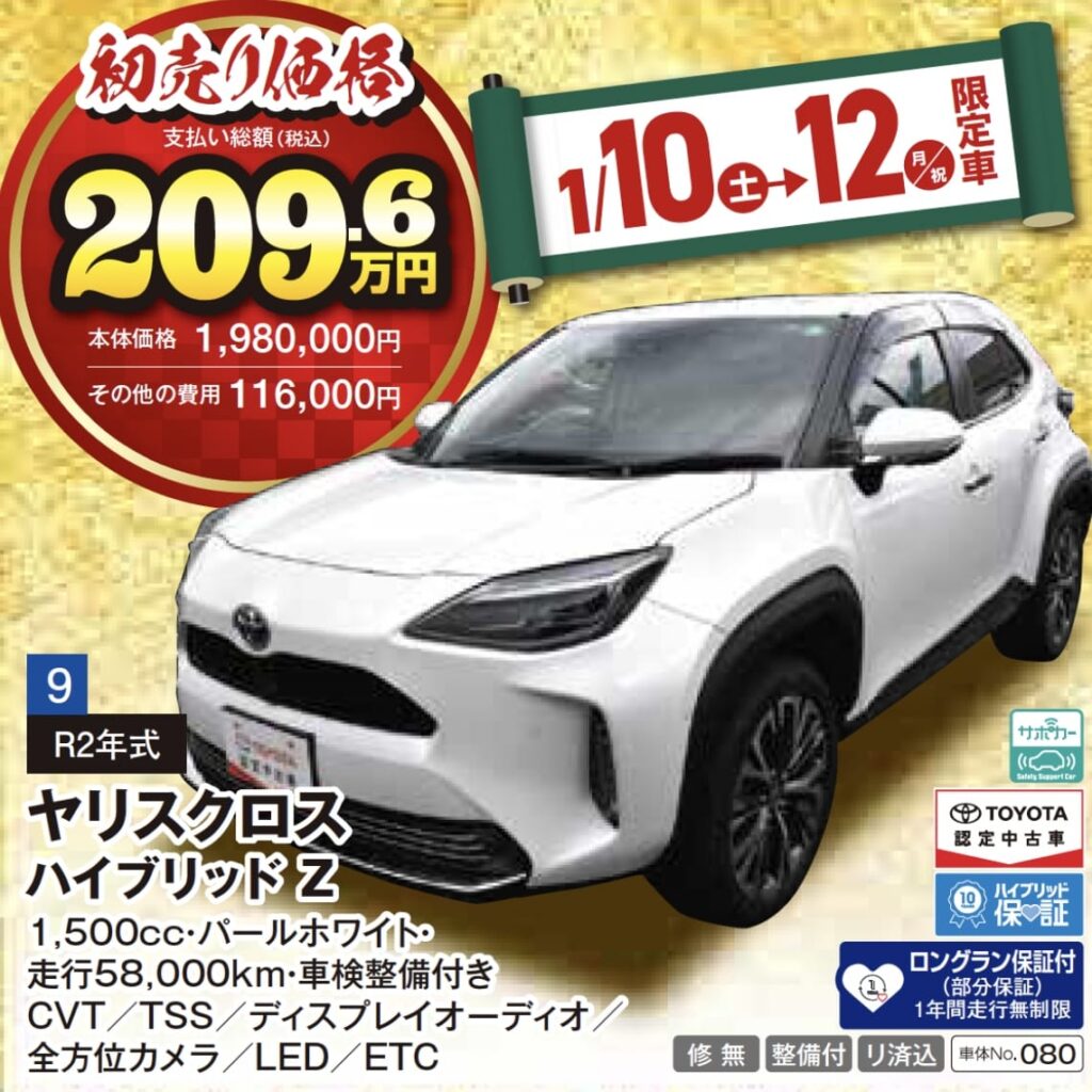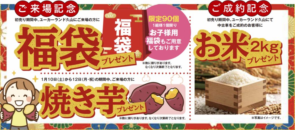 ※1月10日(土)〜12日(月・祝)限定の特選車希望者多数の場合は、10日朝10:00より抽選となりますので、ご了承ください。