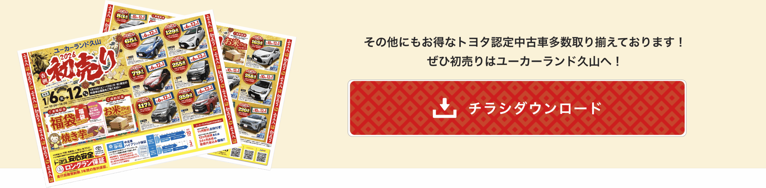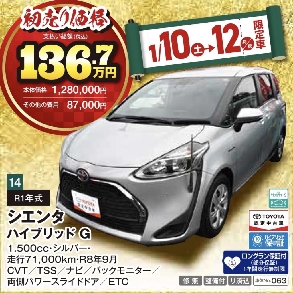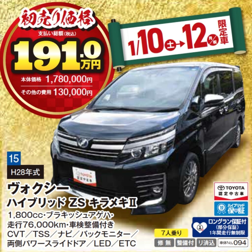 ※1月10日(土)〜12日(月・祝)限定の特選車希望者多数の場合は、10日朝10:00より抽選となりますので、ご了承ください。