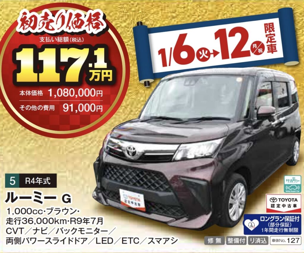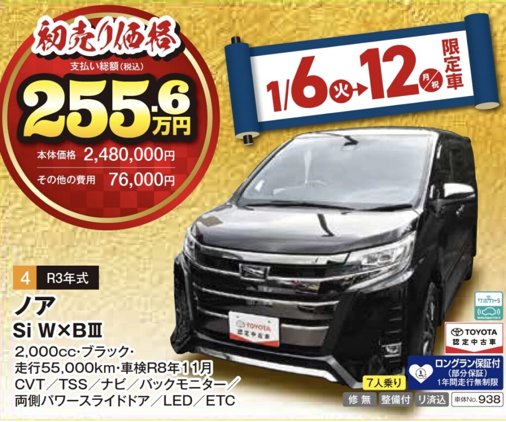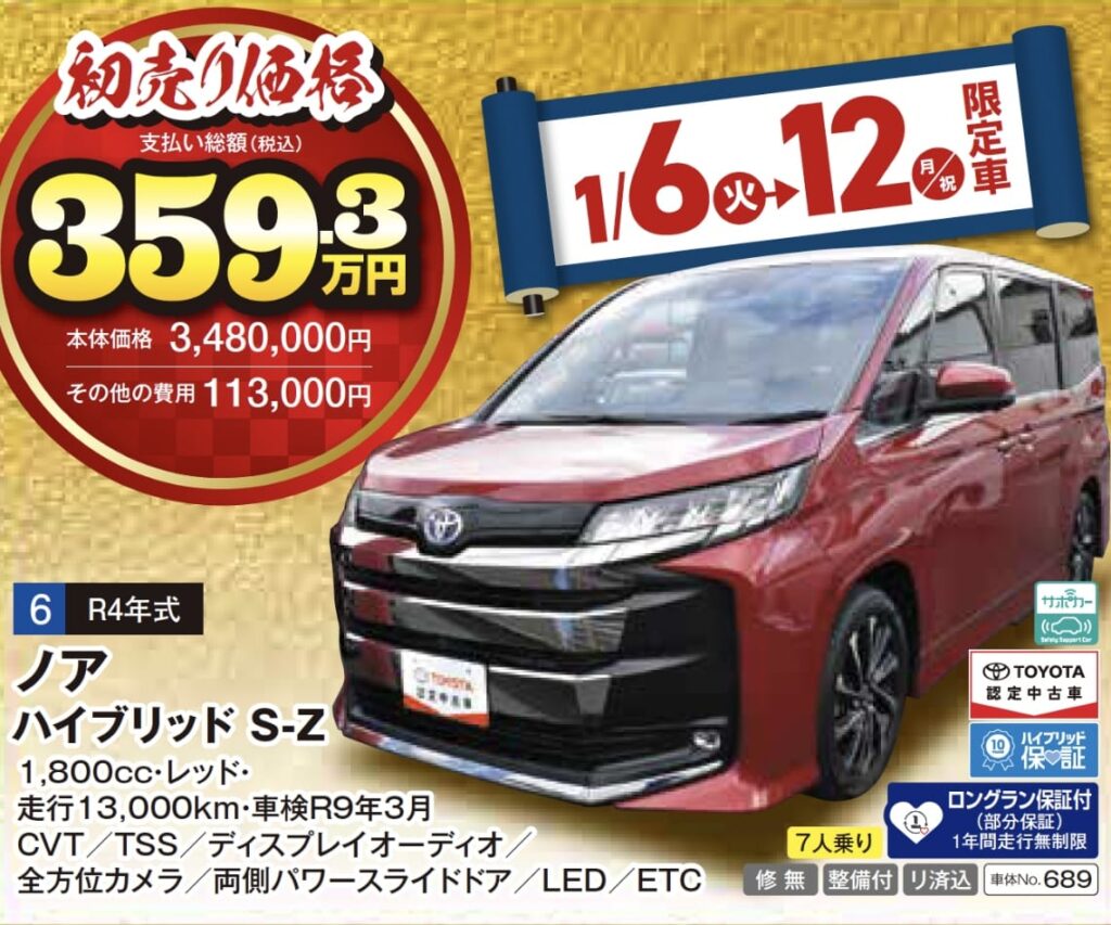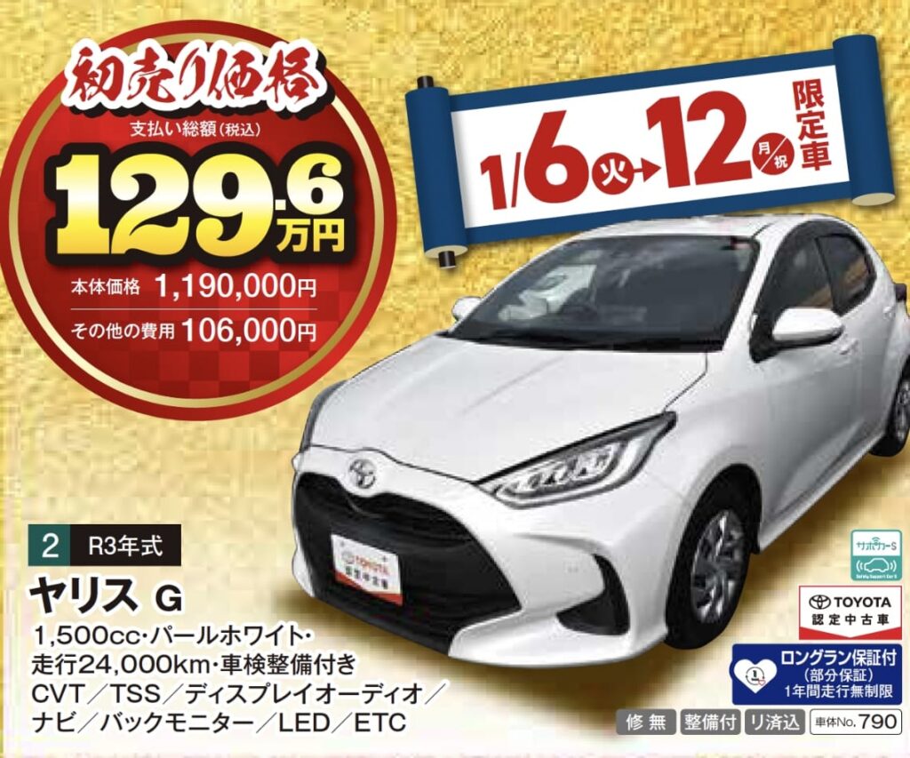 ※1月6日(火)〜12日(月・祝)限定の特選車希望者多数の場合は、6日朝10:00より抽選となりますので、ご了承ください。