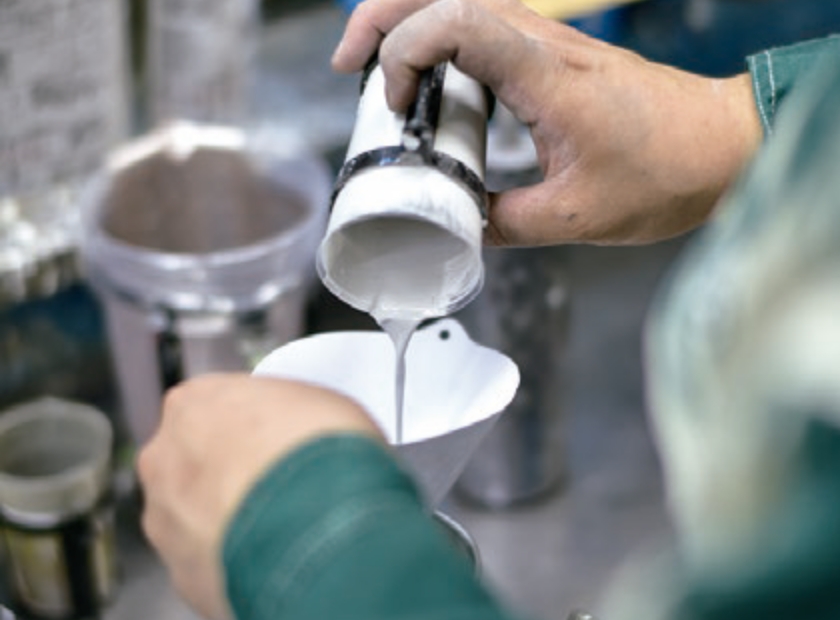 艶を出すための下塗りをしっかり施し、塗装箇所以外に塗装が付着しないようマスキングした上で塗装します。
