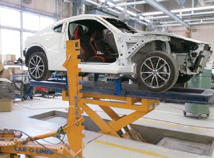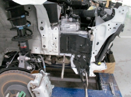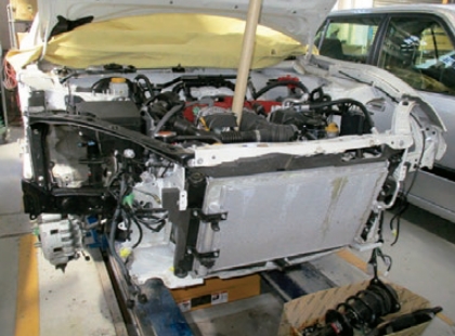 ミリ単位で修正できる最新のフレーム修正機を導入。新車寸法データをもとに行います。大きなダメージも正確に復元します。