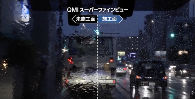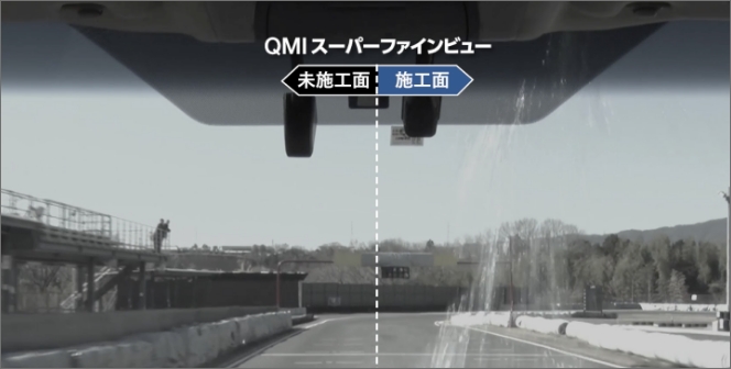 QMIスーパーファインビューは高い撥水効果により、ゲリラ豪雨や対向車からの浴びせ水などから視界を守ります。