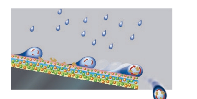 汚れを巻き 水滴が流れる、滑落メカニズム