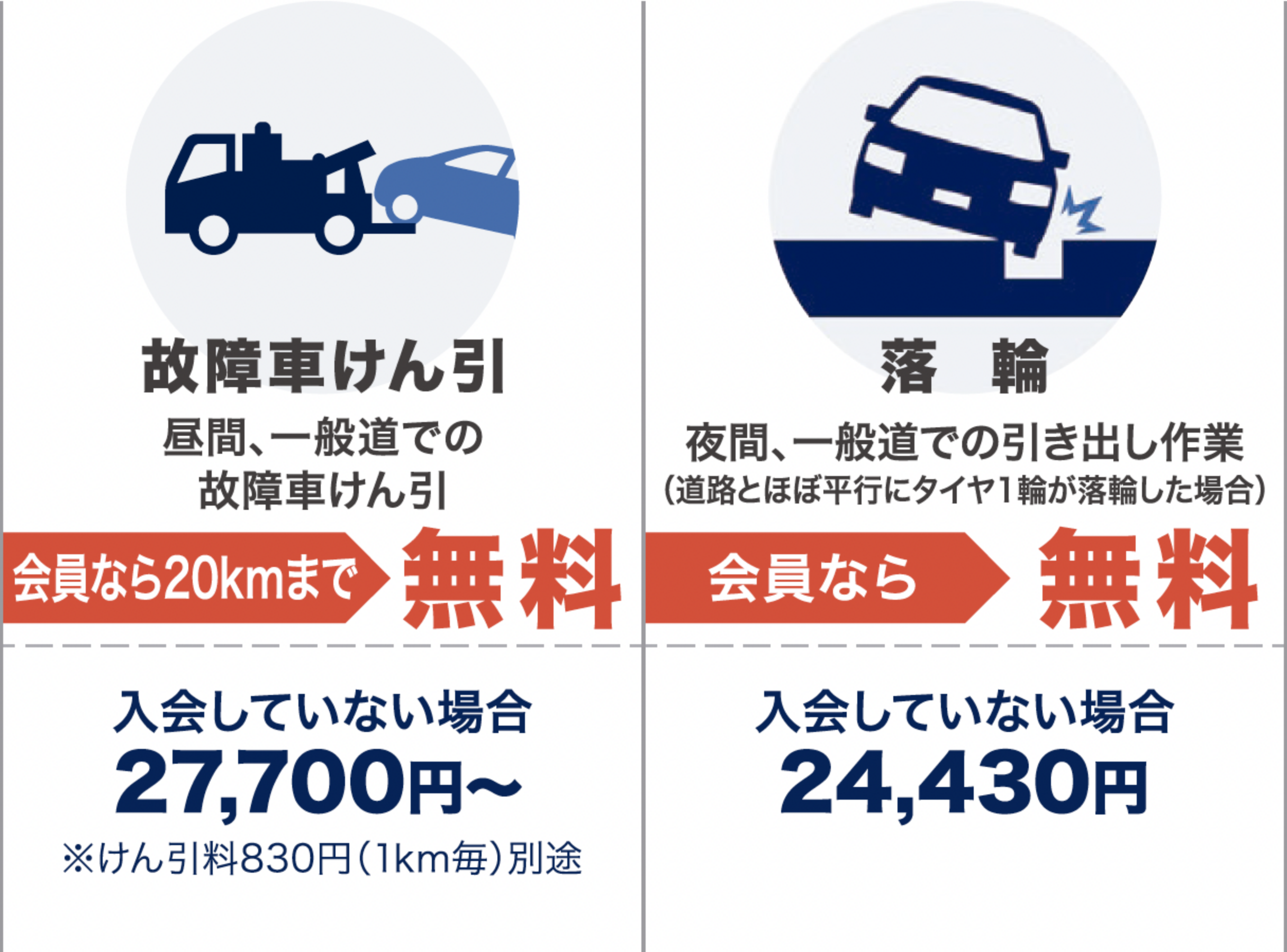 ※詳しい料金についてはJAF公式サイトをご確認いただくか、ロードサービス救援コールセンター (0570-00-8139 ※通話料は有料です)へお問い合わせください。