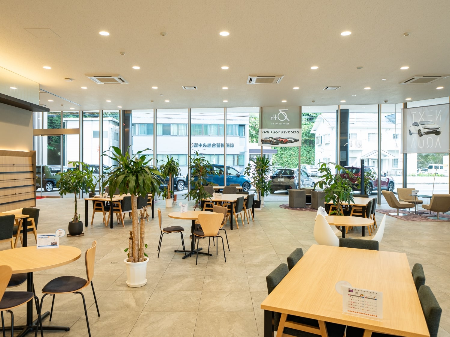 地域に密着した近郊店舗として、皆さまの快適なカーライフをサポートいたします。新型車の試乗車も取り揃えていると共に、中古車展示もございますので、購入のご検討や比較にもご利用いただけます。また、これからは電気自動車にも注力していきますのでぜひご相談ください。