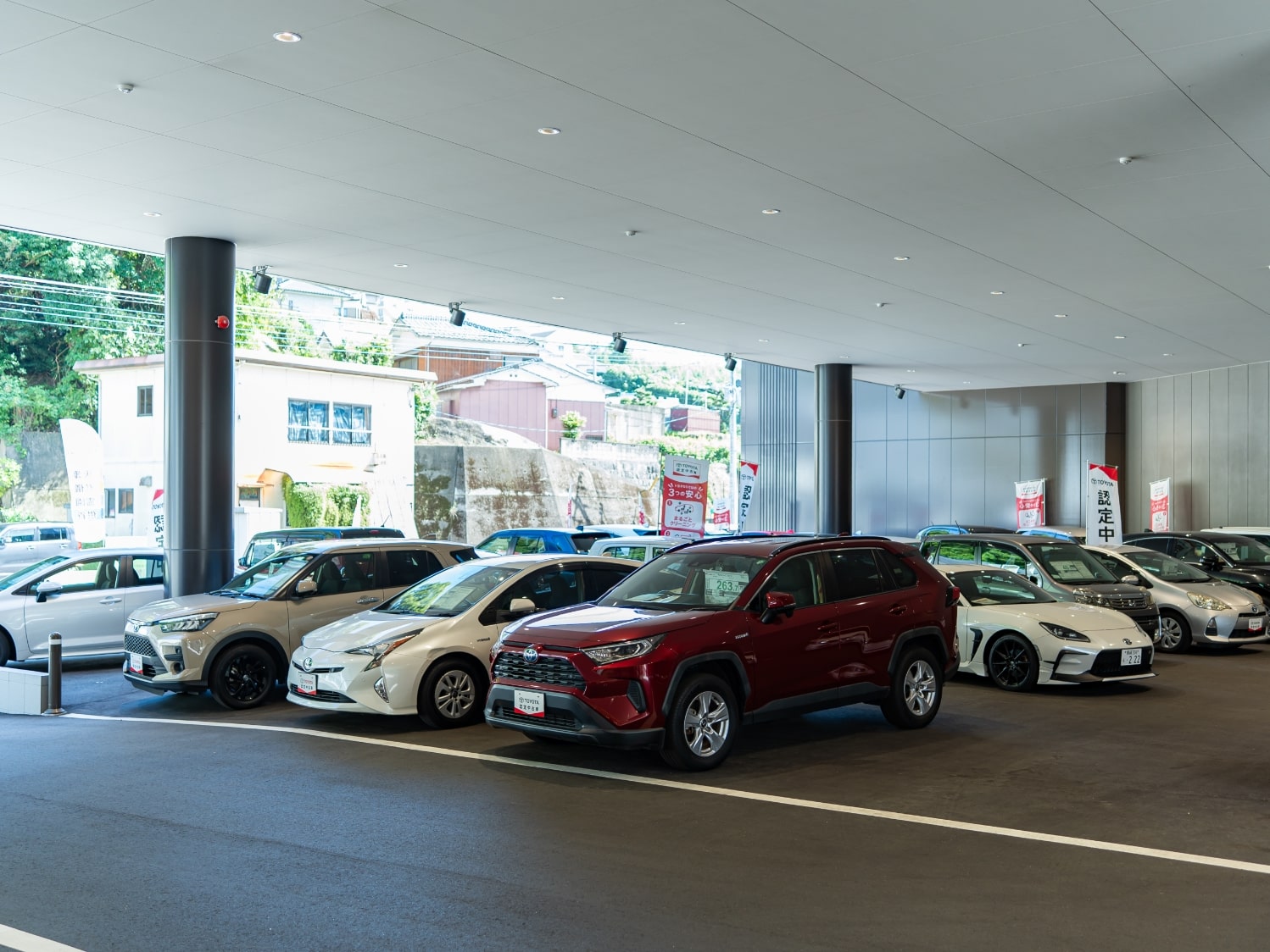 当店は長崎トヨペットとネッツトヨタ長崎の唯一の合同店舗です。さらにダイハツショップも併設しております。普通乗用車の他、軽自動車、中古車等も取り揃えておりますので、幅広いお客様のニーズにお応えできます。