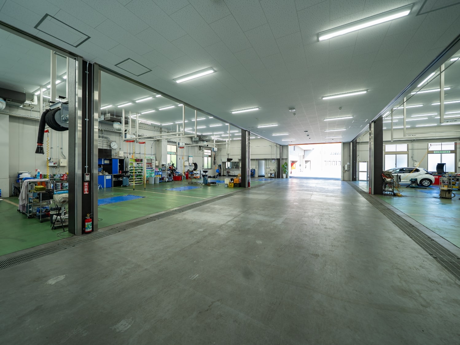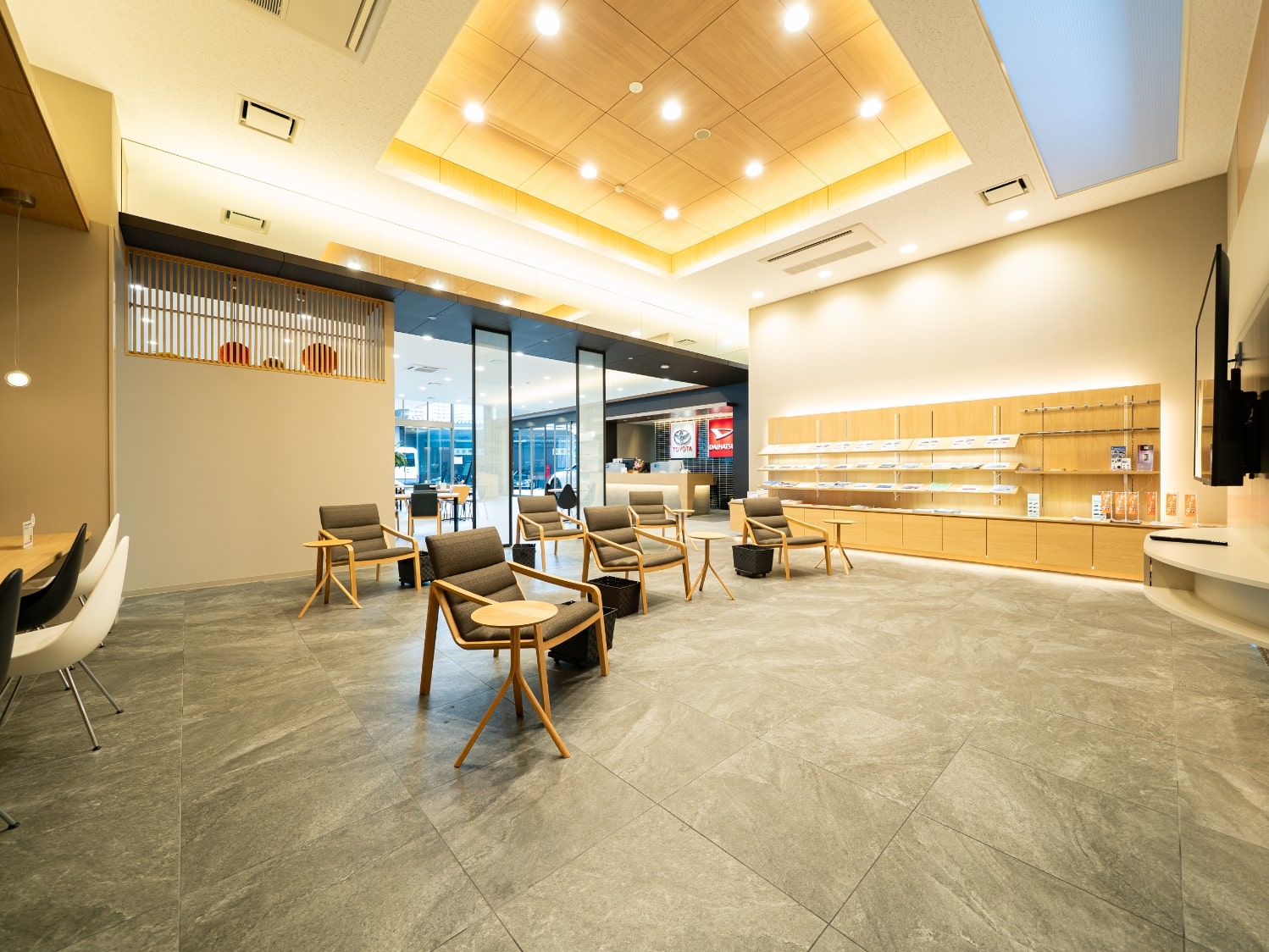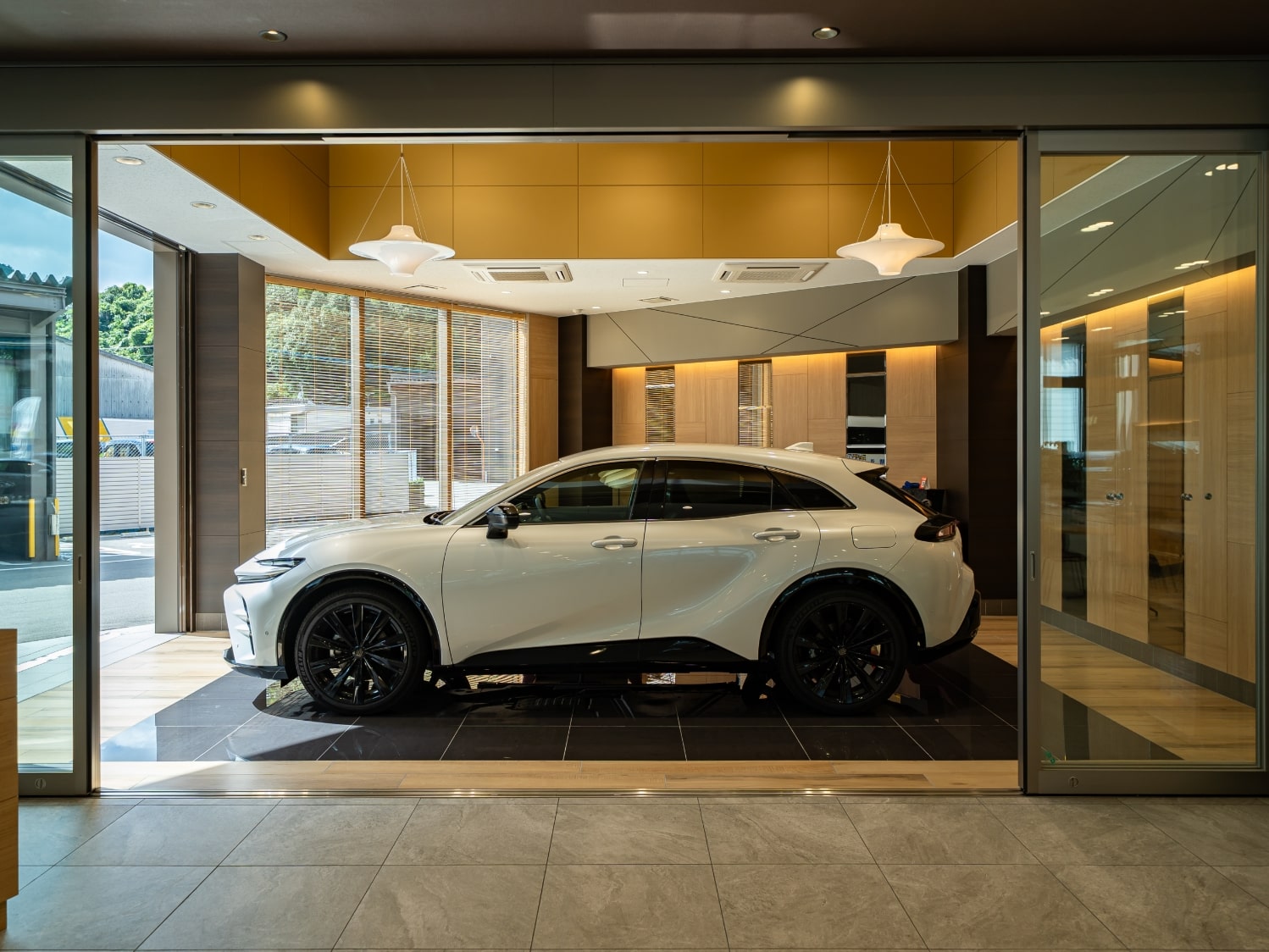 当店舗は2023年にオープンした新しい店舗で、上質な雰囲気のショールームや最新機器を揃えた整備工場も完備しており、安心してお車をご利用いただける環境を整えています。