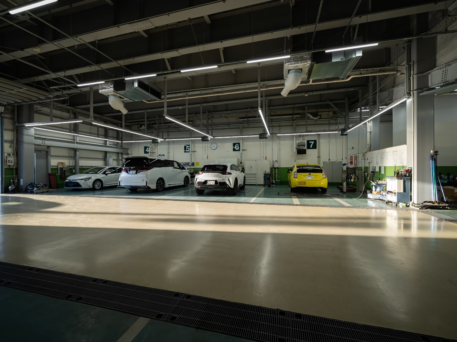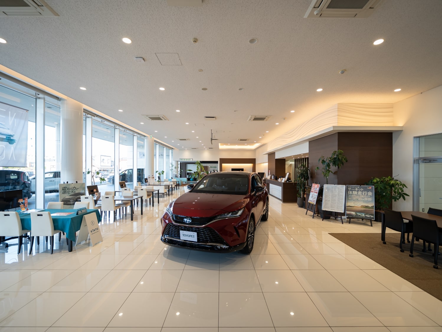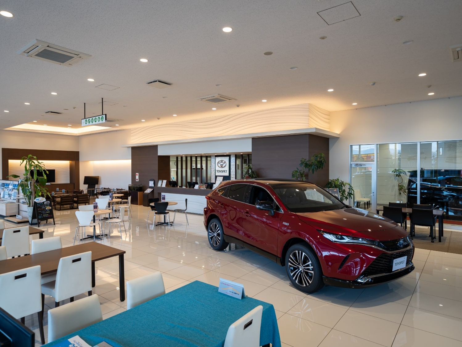 当店は、県央地区で当社最大規模の店舗として、近隣には諫早総合運動公園があり、賑わいのある国道57号線沿いに立地しております。当店は急速EVスタンドやメンテナンス工場も併設するなど施設も充実しておりますので、安全・安心なカーライフをサポートできる体制を整えております。