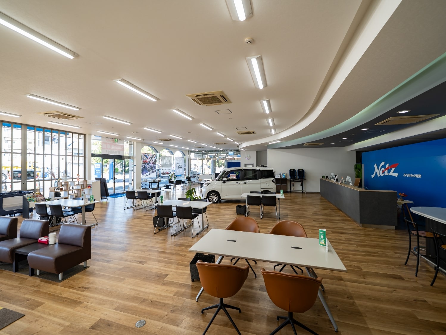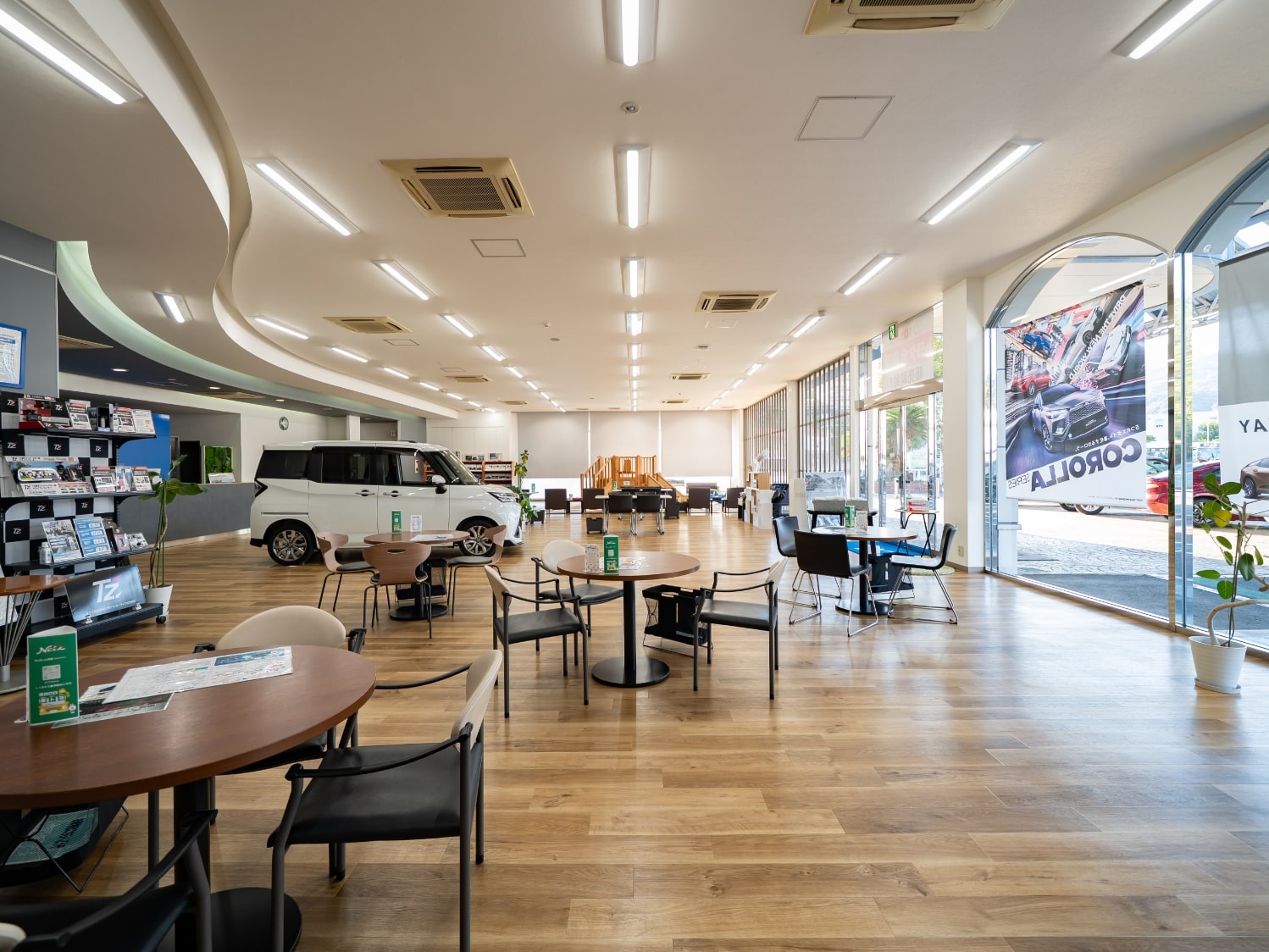 ショールームは明るく居心地のいい空間で、キッズスペースやドリンクサービスもご用意。ご家族そろってゆっくり車を見ながら、楽しい時間をお過ごしいただけます。