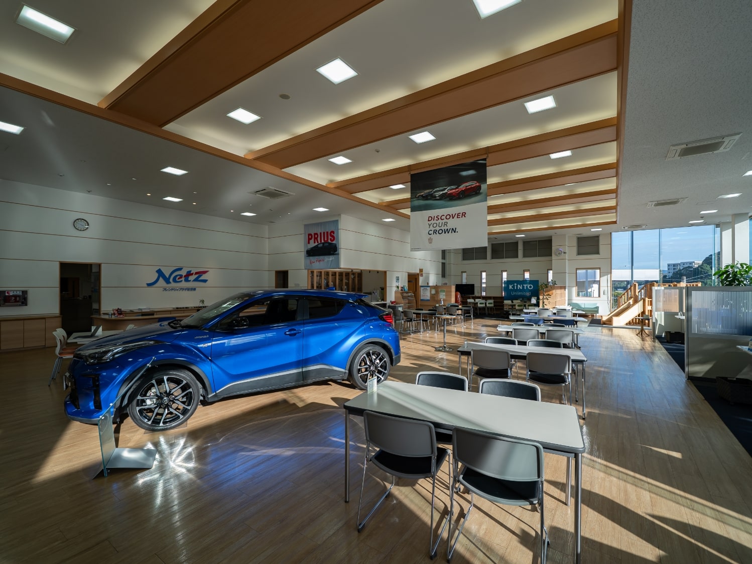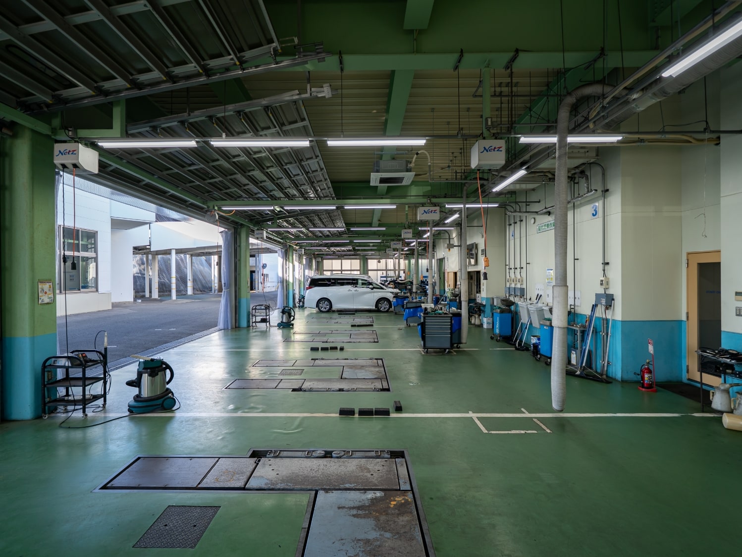 店内は明るく広々としており、多くのお客様が快適に過ごせる空間を確保しています。整備・メンテナンスの施設も充実し、メンテナンスからお付き合いを始められるお客様もたくさんいらっしゃいます。